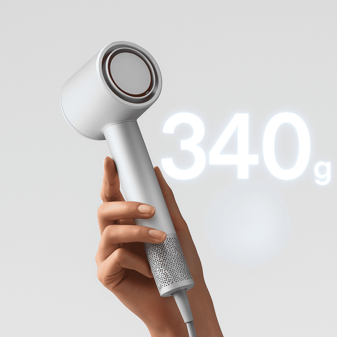 Nur 340 g Gewicht und 58 dB – ideal für den Alltag.