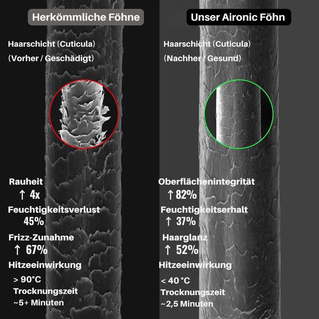 200 Mio. negative Ionen für gesundes, seidiges Haar.