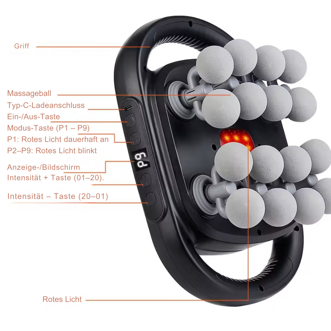 16 Aufsätze & 20 Intensitätsstufen – perfekt für Nacken, Rücken, Beine, Arme & mehr.